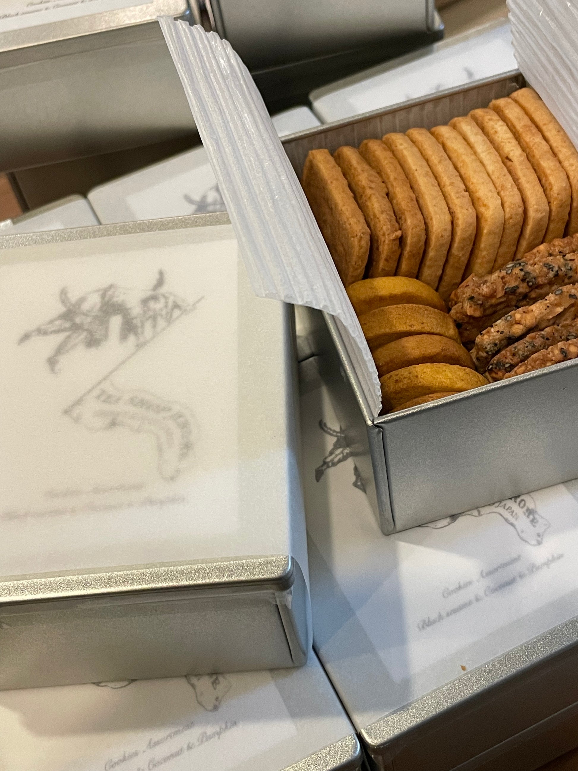 黒胡麻アーモンド、ココナッツ、かぼちゃの3種をクッキー缶に詰めました